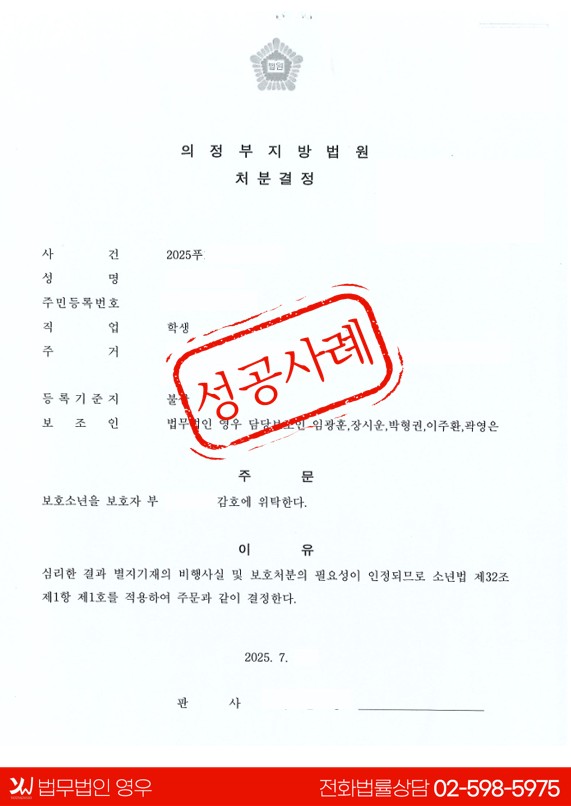 학교폭력 형사고소(재물손괴, 폭행) 보호자 감호 위탁 성공사례