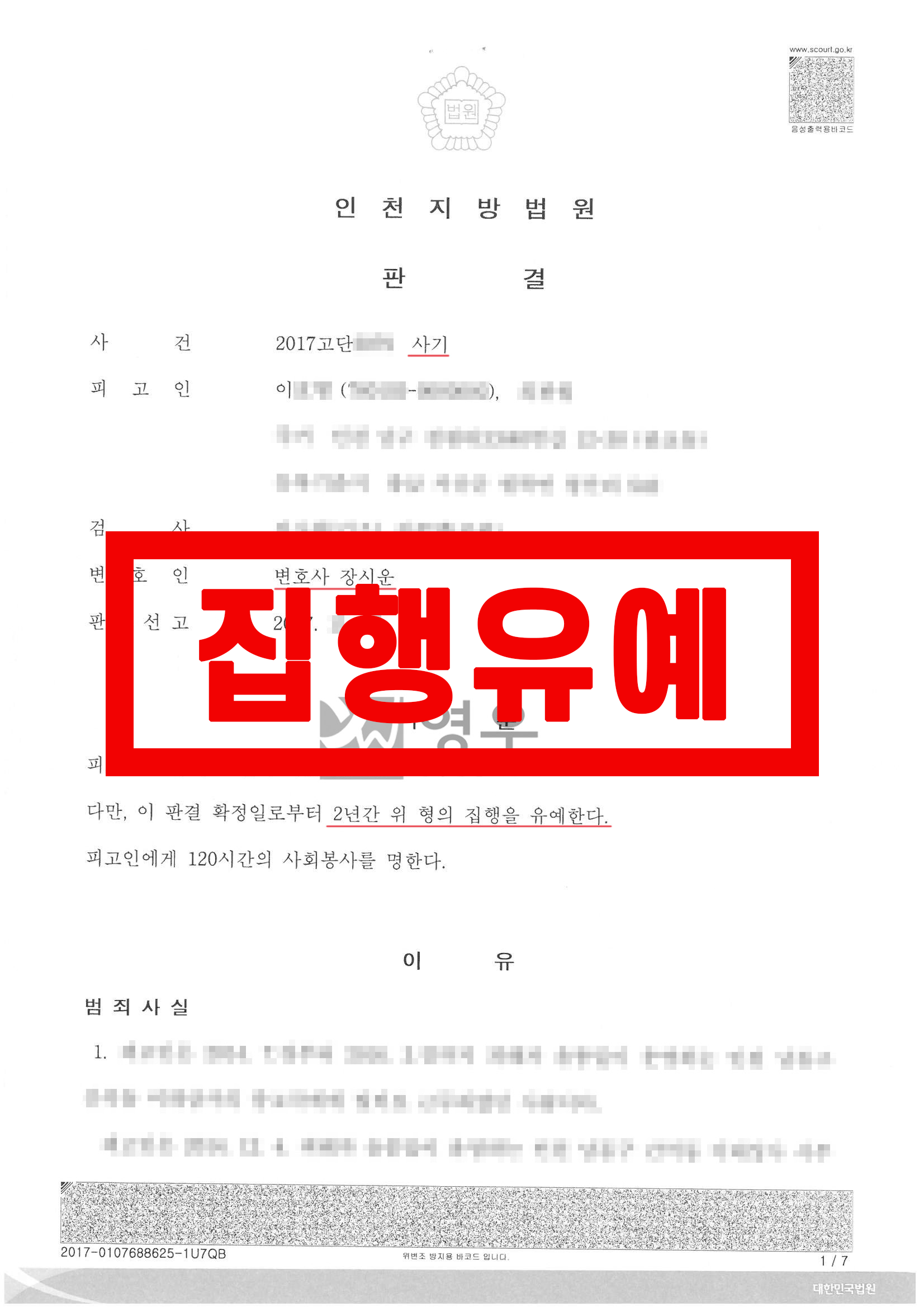 법원은 위 사정과 이 사건 범행의 발생경위를 유리한 정상으로 참작하여 집행유례를 선고하였습니다.