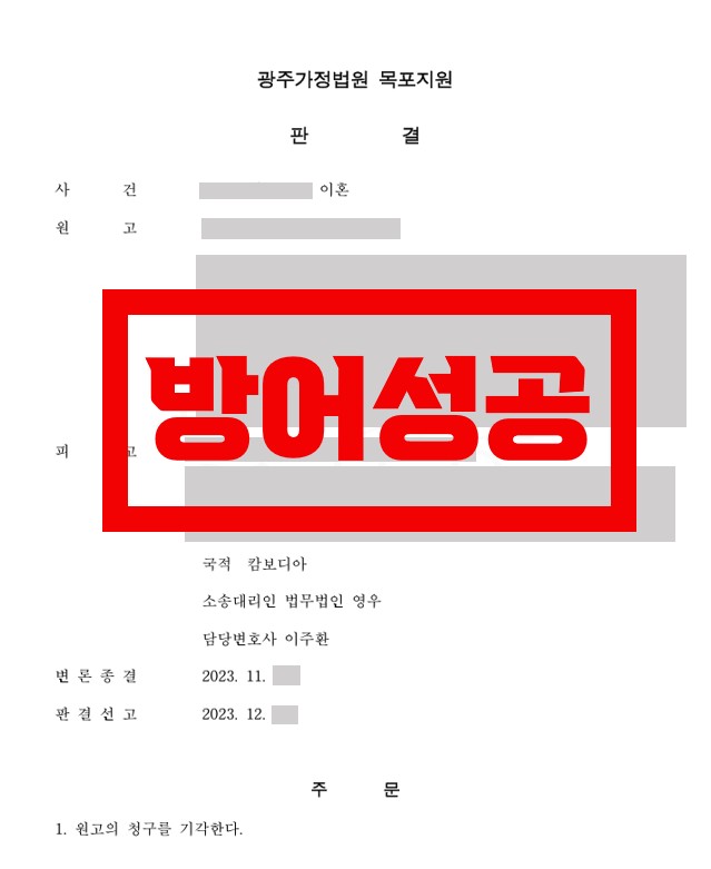 외국인 이혼성공, 결혼비자 취득 문제 방어 성공