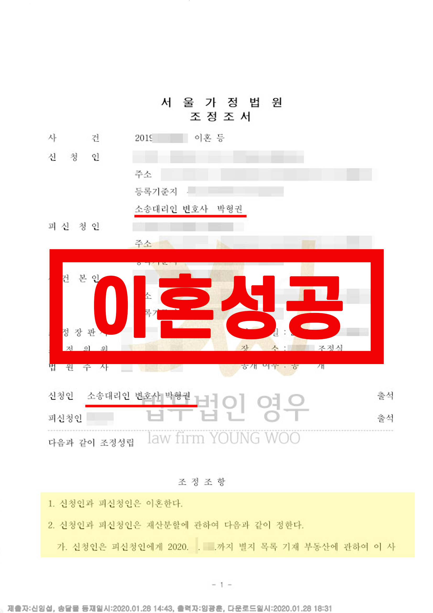 추후 양 당사자간에 이혼의 의사는 협의가 되어 이혼 및 재산분할에 대한 조정이혼을 신청하게 되었습니다.
