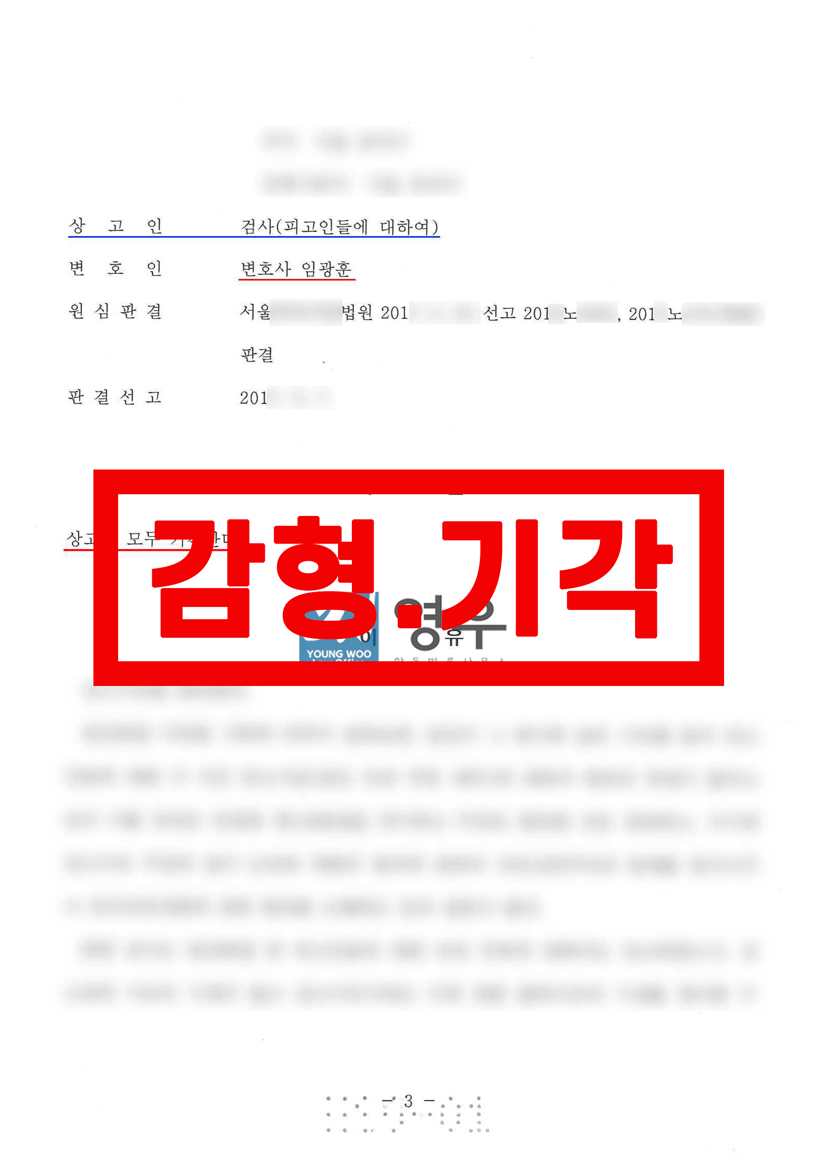 1심 법원은 이와 같은 의뢰인의 사정과 이 사건의 발생경위를 유리한 정상으로 참작하여 의뢰인에게 징역 3년을 선고하여 구형보다 감형을 하였고, 부착명령 청구는 기각하였습니다.