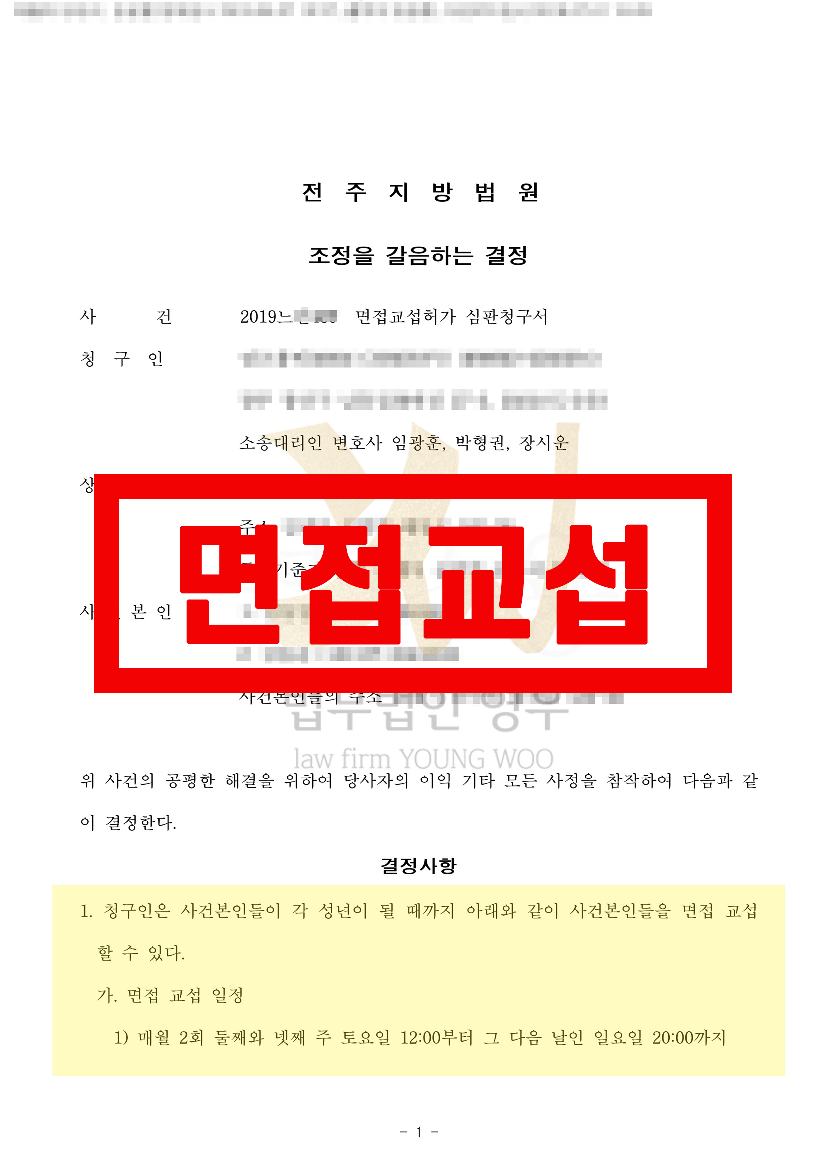 그 결과 사건본인들이 각 성년이 될 때까지 면접 교섭을 할 수 있게 되었습니다.