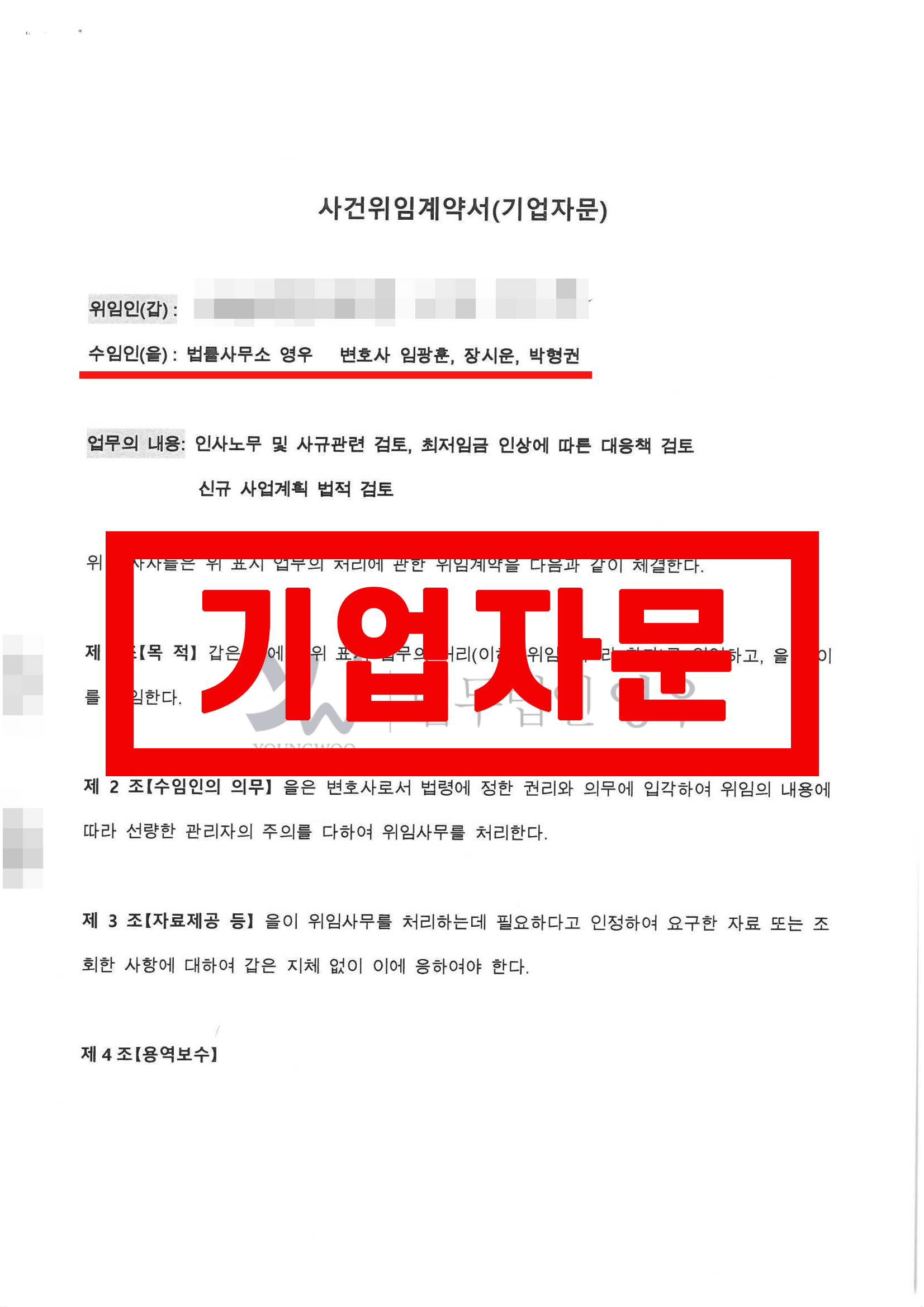 수임인(법무법인 영우)의 의무