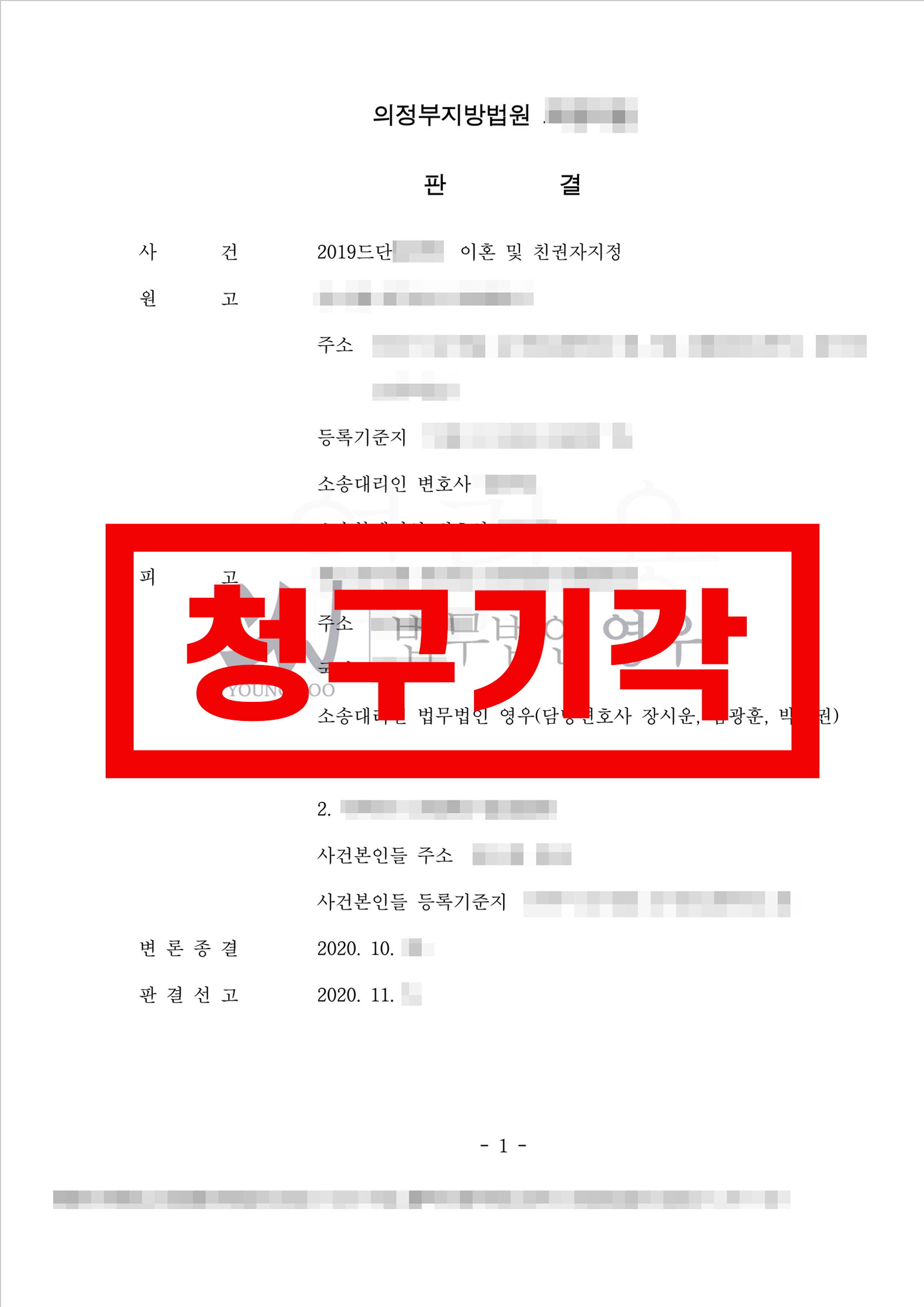 법원에서는 피고의 법률대리인인 법무법인 영우에서 주장하는 바를 받아들여 아래와 같이 판시했습니다.