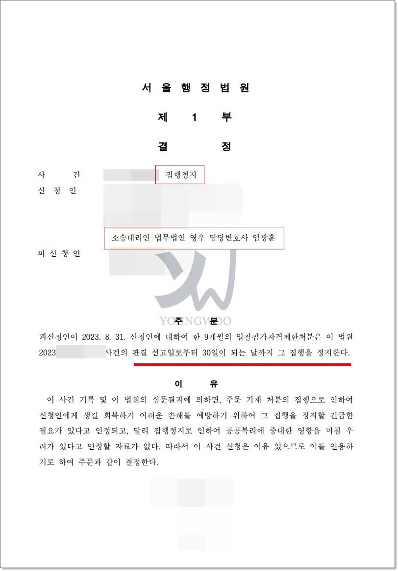 부정당업자 입찰참가자격제한처분 집행정지 성공